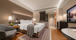 Experience sleek, modern interiors with practical and elegant designs, thoughtful amenities including high-speed free WiFi, comfortable bedding, dry-wet separated bathrooms, in-room heating, a well-equipped fitness center, a panoramic high-altitude restaurant serving local specialties and rich breakfast, free self-service laundry, children’s playground and versatile meeting spaces, as well as attentive 24-hour front desk service. Our prime location puts Wulong’s magnificent natural scenery and unique karst culture right at your doorstep. Whether you’re traveling for leisure, sightseeing, family trips, business or exploring the city’s natural wonders, we ensure a pleasant, convenient and memorable stay with thoughtful details that make you feel at home.